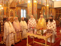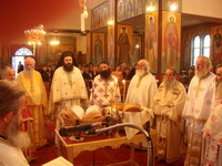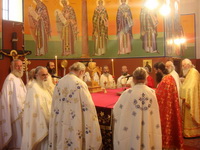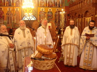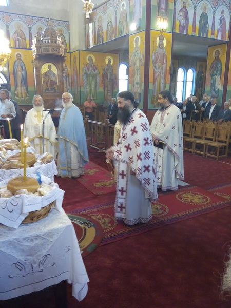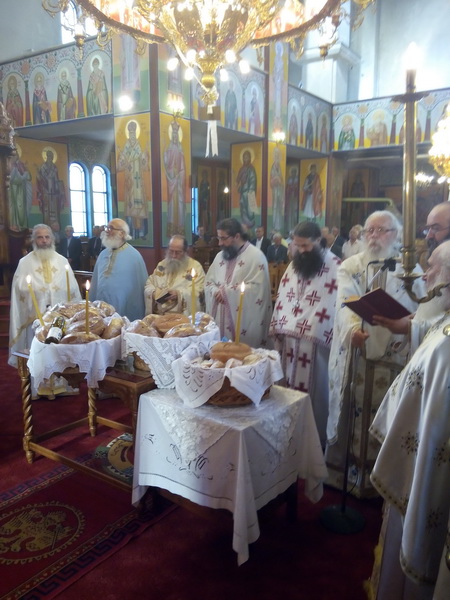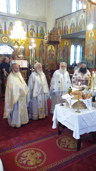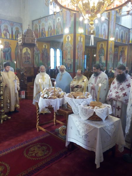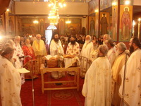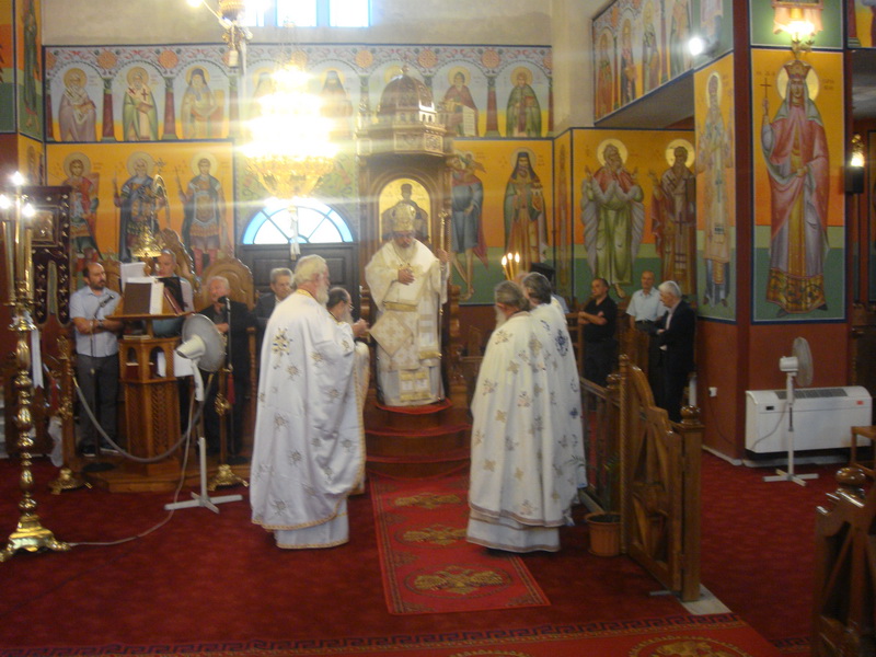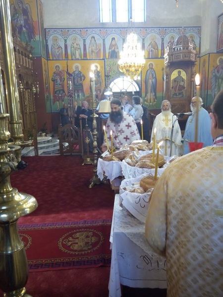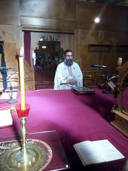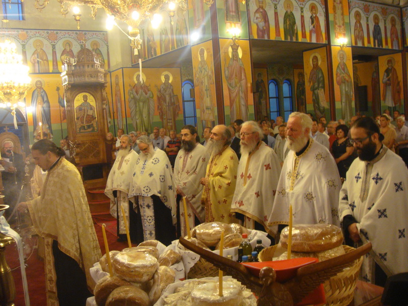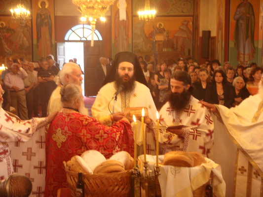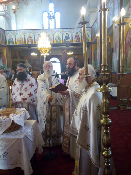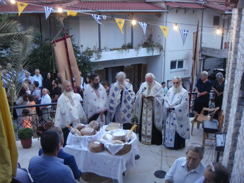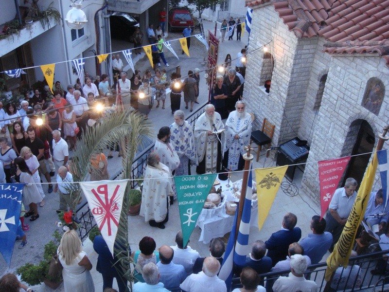 Ο προσκεκλημένος της ενορίας μας, Ιεροψάλτης κ. Παππάς Βασίλειος από τον Ι. Ν. Αγίου Κων/νου και Ελένης Πρέβεζας και φέτος παραβρέθηκε και συνέψαλε μελωδικά με τους Ιεροψάλτες της Ενορίας μας, τον κ. Κώνστα Θεόδωρο, τον κ. Βασιλείου Θεόδωρο και τον Αναγνώστη κ. Τσεκλιά Γεώργιο. Ο Πανοσιολ. Αρχιμανδρίτης της Ιεράς Μητροπόλεως Θεσσαλονίκης π. Χρυσόστομος Νάσης, έχων το γενικό πρόσταγμα, κύρηξε τον Θείο Λόγο. Πλήθος ευλαβών προσκυνητών από το χωριό μας και όλη την γύρω περιοχή, θαύμασαν την εκκλησία μας, τον στολισμό της, την καθαριότητά της και την όλη προετοιμασία που έγινε από το Εκκλησιαστικό Συμβούλιο. Μετά το πέρας της Θείας Λειτουργίας, προσφέρθηκε από το Εκκλησιαστικό Συμβούλιο σε όλο το Χριστεπώνυμο πλήρωμα της εκκλησίας μας, και τους ευλαβείς προσκυνητές, λουκούμι και αναψυκτικό. Η εκκλησία δεξιώθηκε τους Ιερείς, την Δημοτική και Τοπική Αρχή, και τους Ιεροψάλτες μας στην ταβέρνα του κ. Τάσση Κων/νου στην πλατεία του χωριού. Το Σαββάτο βράδυ, έγινε γλέντι με λαϊκή βραδιά στην ταβέρνα του κ. Κώτση Δημήτριου στον κάμπο, και την Κυριακή γλέντι με Δημοτικά τραγούδια στο κέντρο της κ. Τσιρώνη Λαμπρινής στην πλατεία του χωριού. Ακολουθούν φωτογραφικά στιγμιότυπα από την εκκλησίας μας και την πανηγυρική Θεία Λειτουργία.